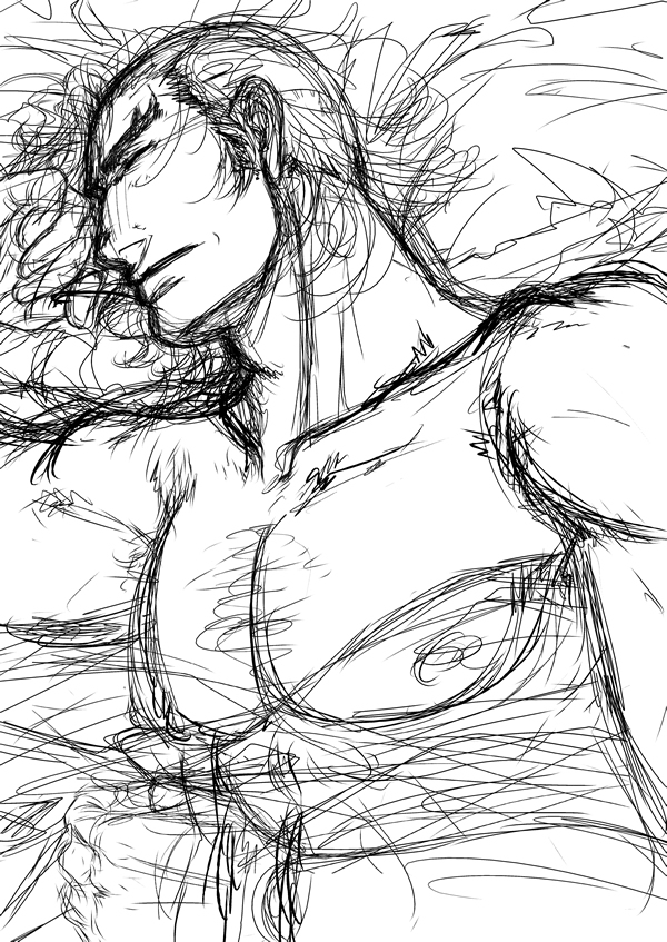 新刊は小説なので、いつもなら小説の表紙に絵は描かないんですが、今回はちょっと違う構成にしようという事で先に表紙絵を進めています。